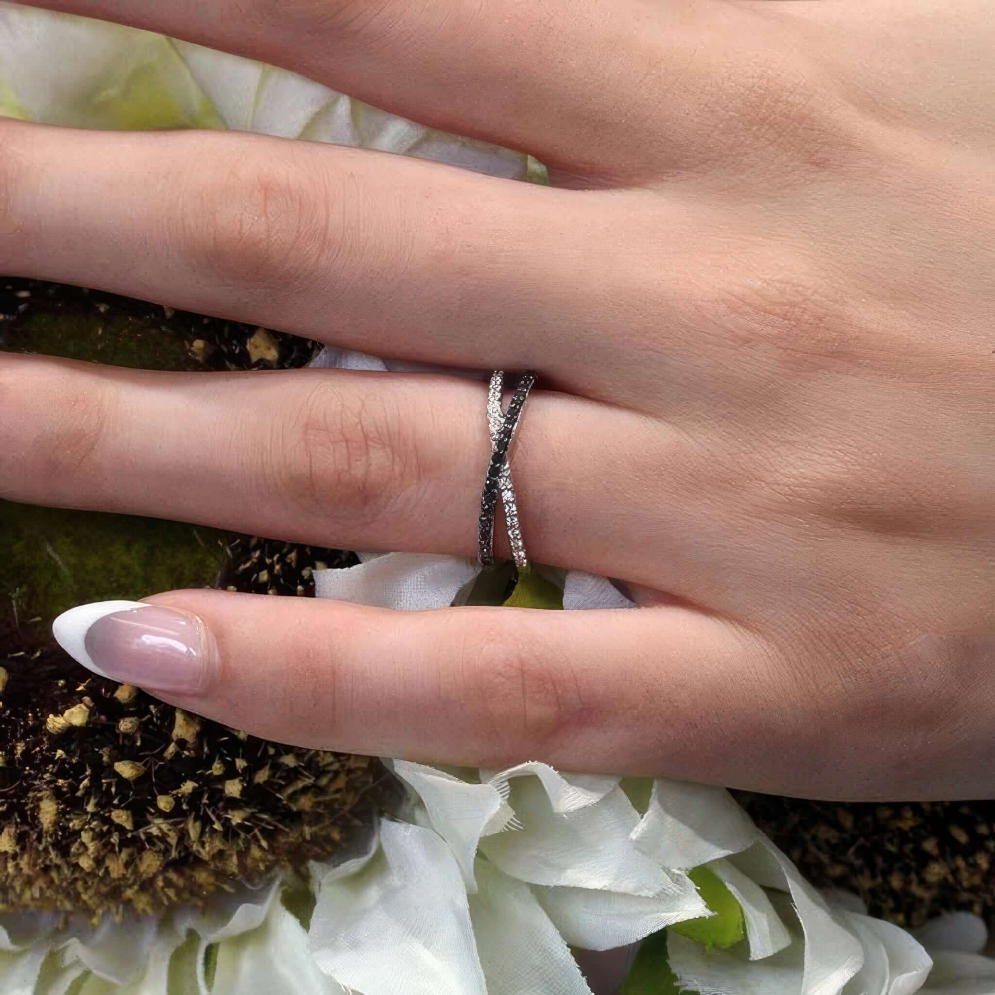 Criss Cross Black and White Diamond Promise Ring