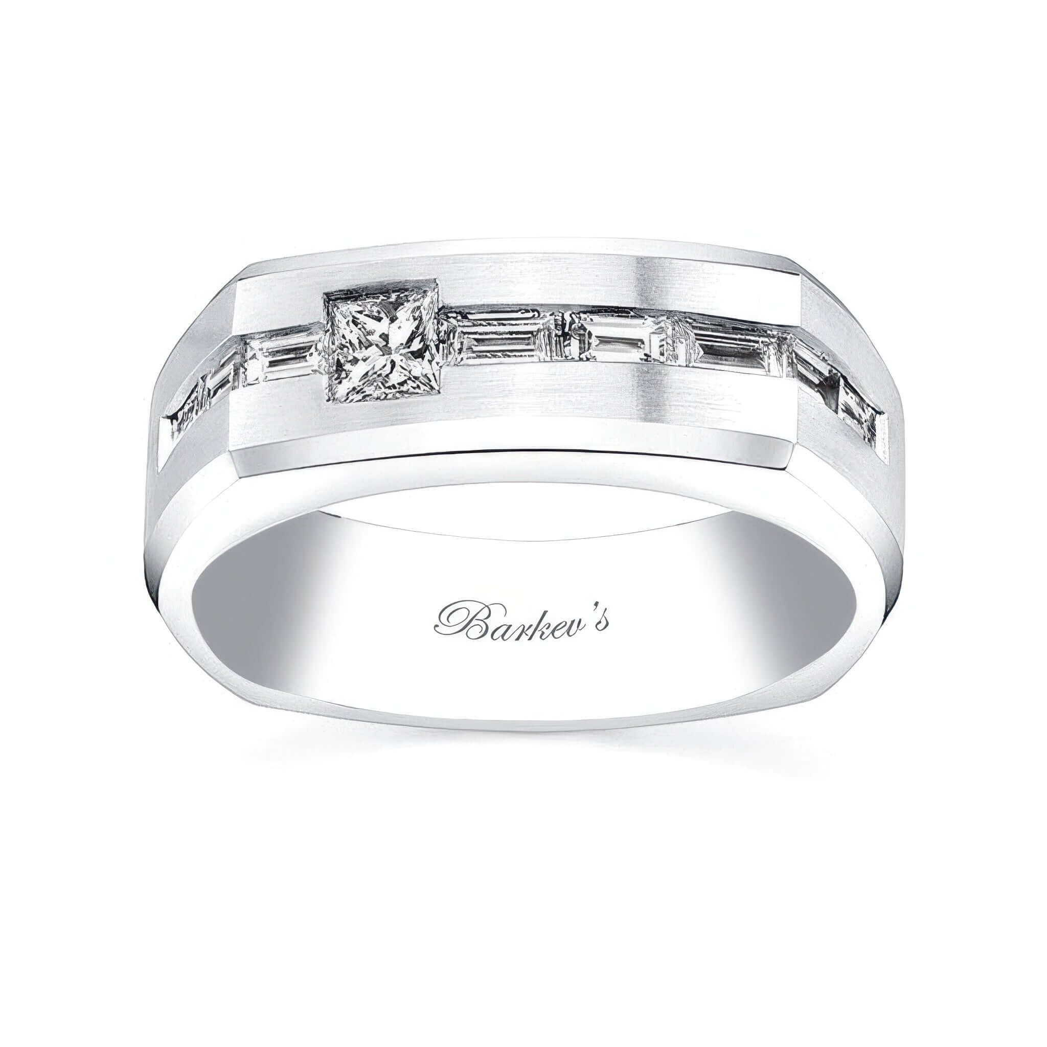 This mens princess cut and baguette diamond band features a beveled edge with princess cut baguette diamonds.