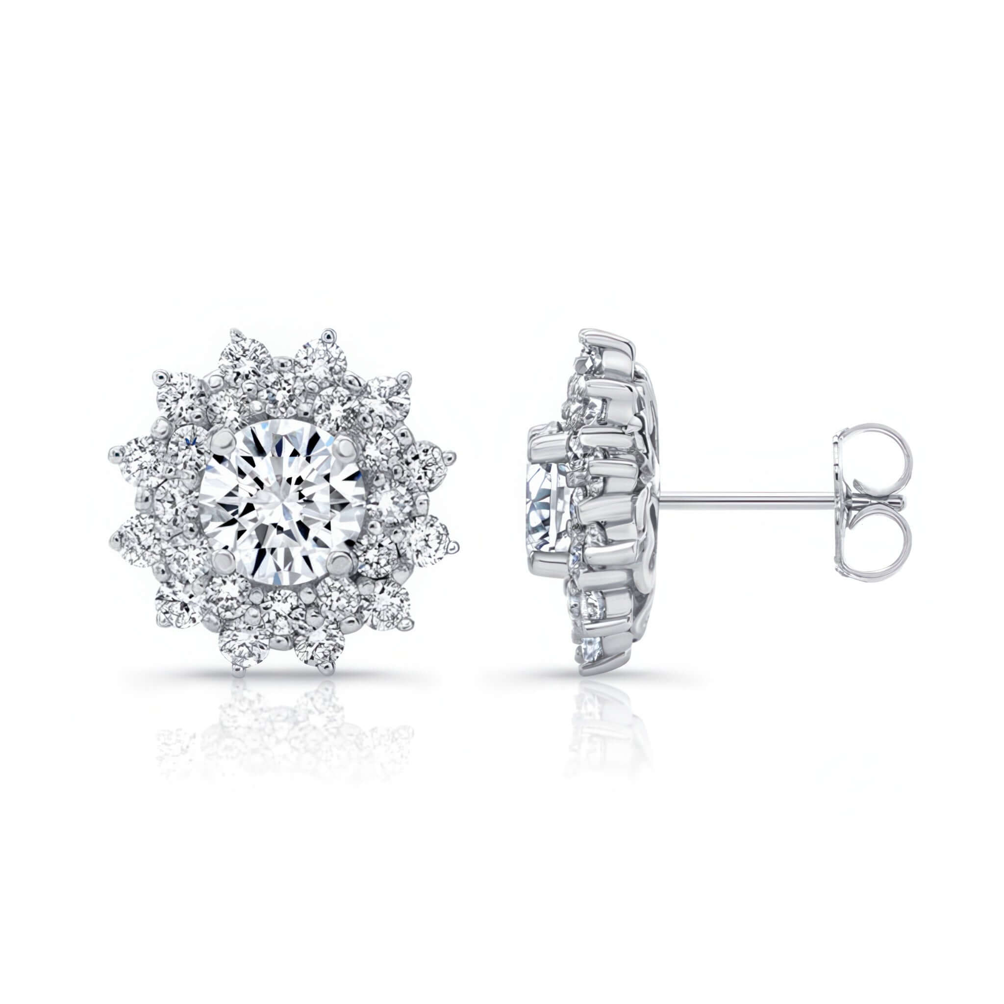 A pair of 1.00ct. double halo lab diamond studs featuring a double halo surrounding the center for a stunning look.