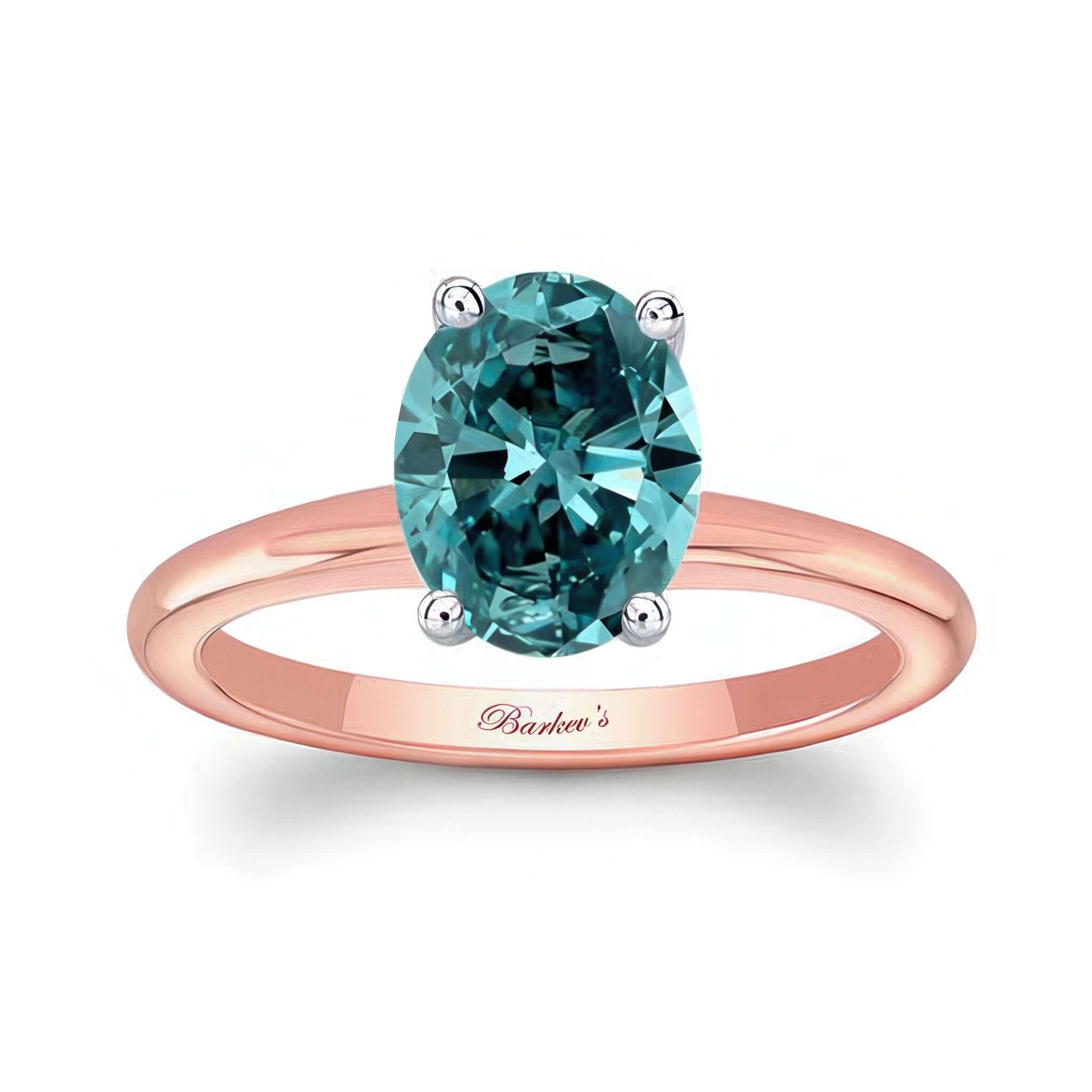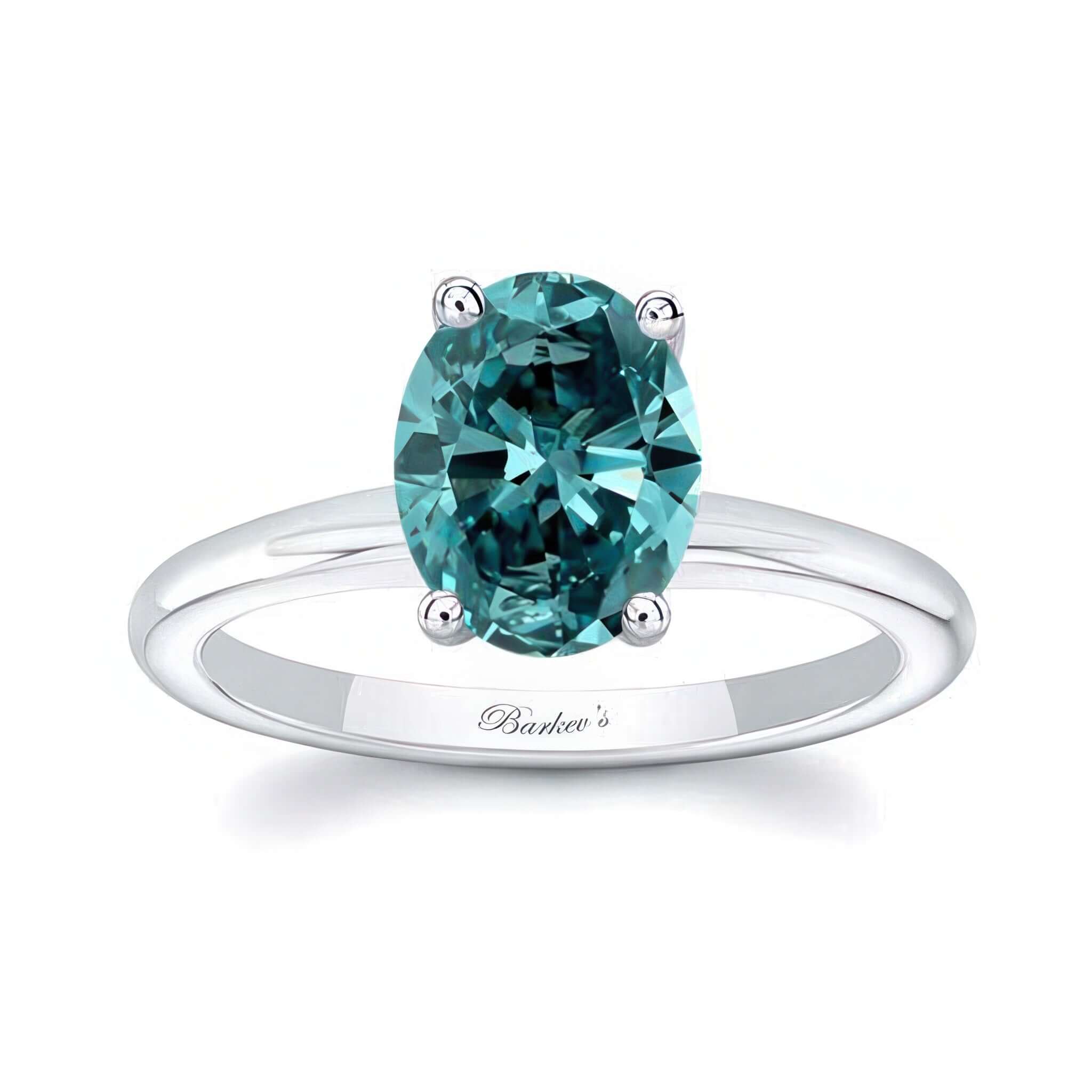 A beautiful 2 carat oval solitaire blue diamond ring featuring a prong set oval center sitting on a shiny gold shank with a comfort fit for extra elegance.