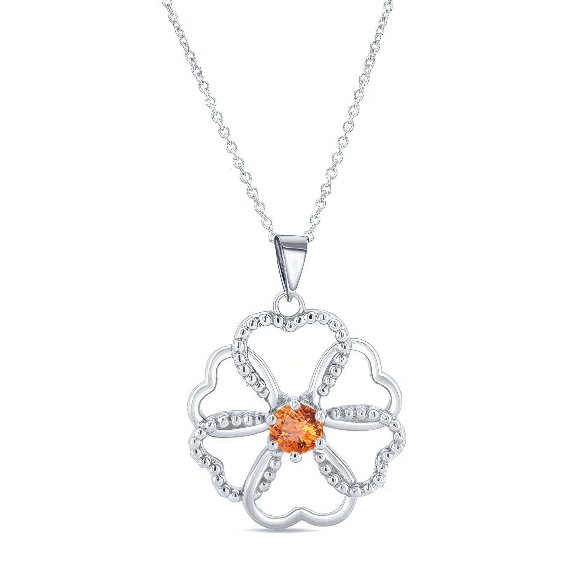 A beautiful citrine silver intertwined hearts necklace featuring intertwined heart shapes and a half carat citrine center.