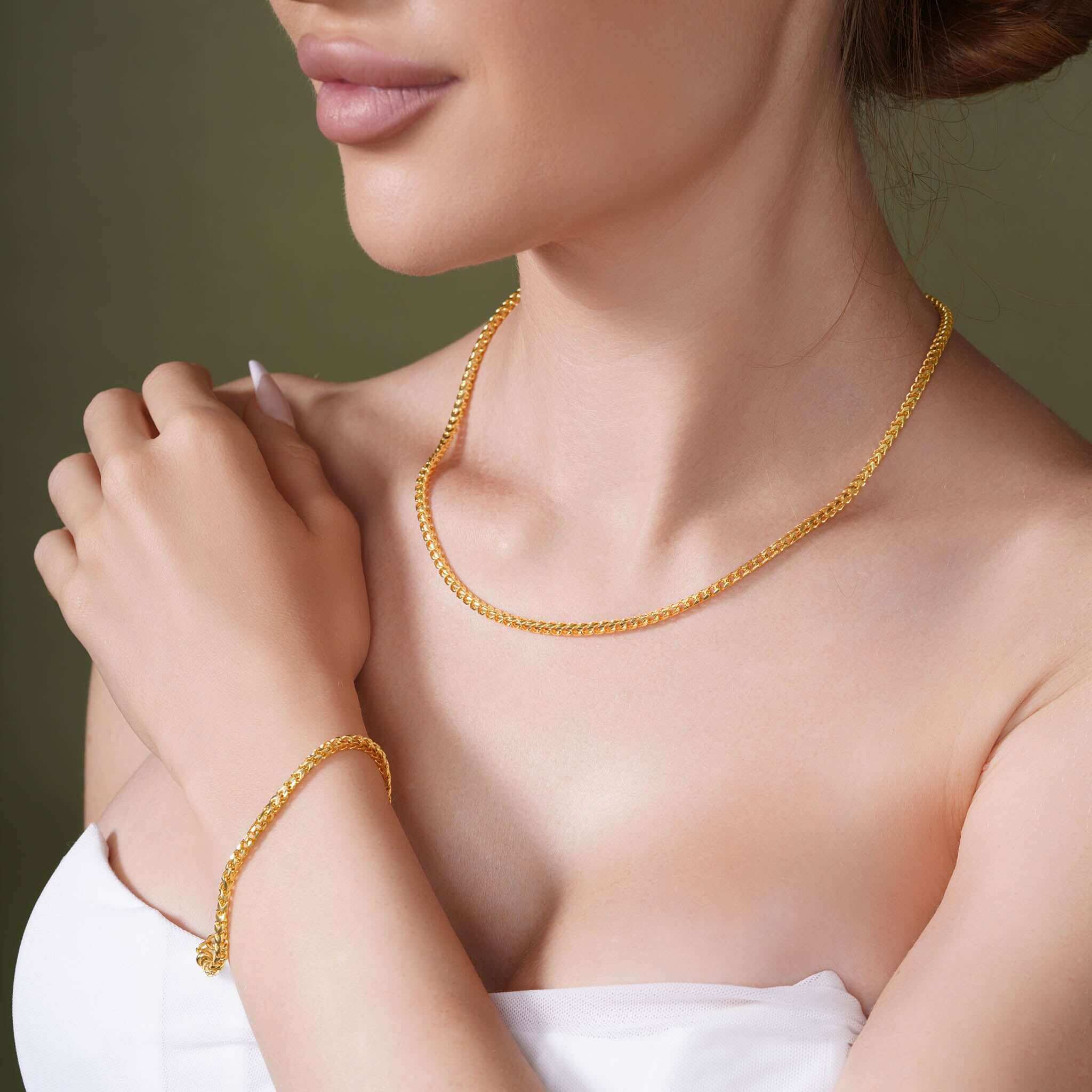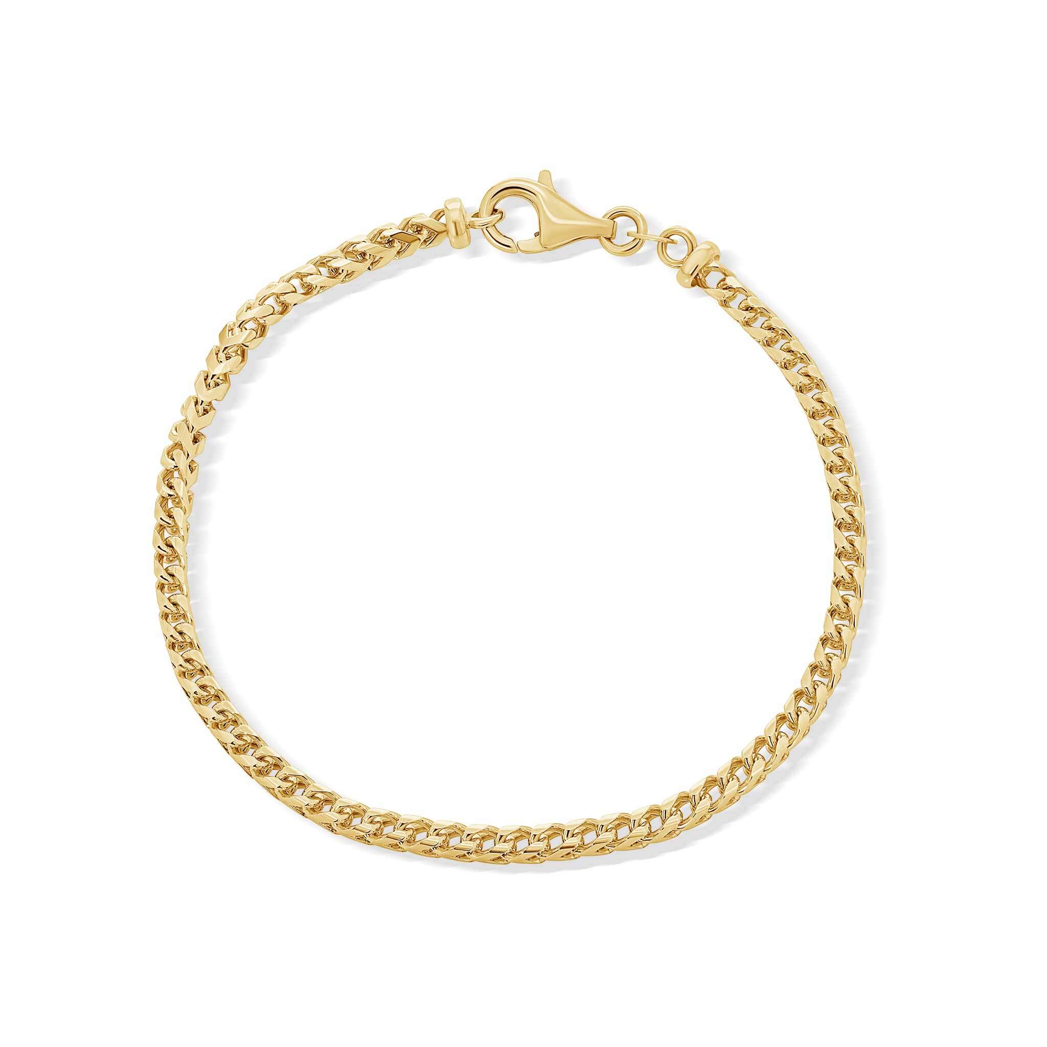 Elevate your accessory collection with this Franco gold bracelet, expertly crafted for lasting elegance. Its timeless chain design offers both strength and versatility, making it an ideal piece for daily wear or special occasions. Finished in radiant gold, this bracelet not only enhances your style but also provides durability against everyday wear. Perfect for layering or as a standalone statement, it reflects refined taste and meticulous craftsmanship.
