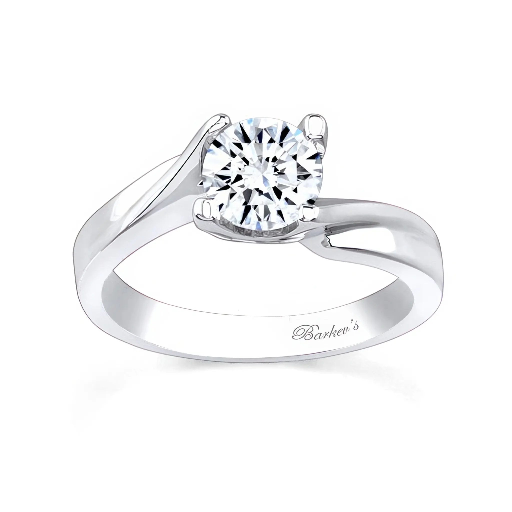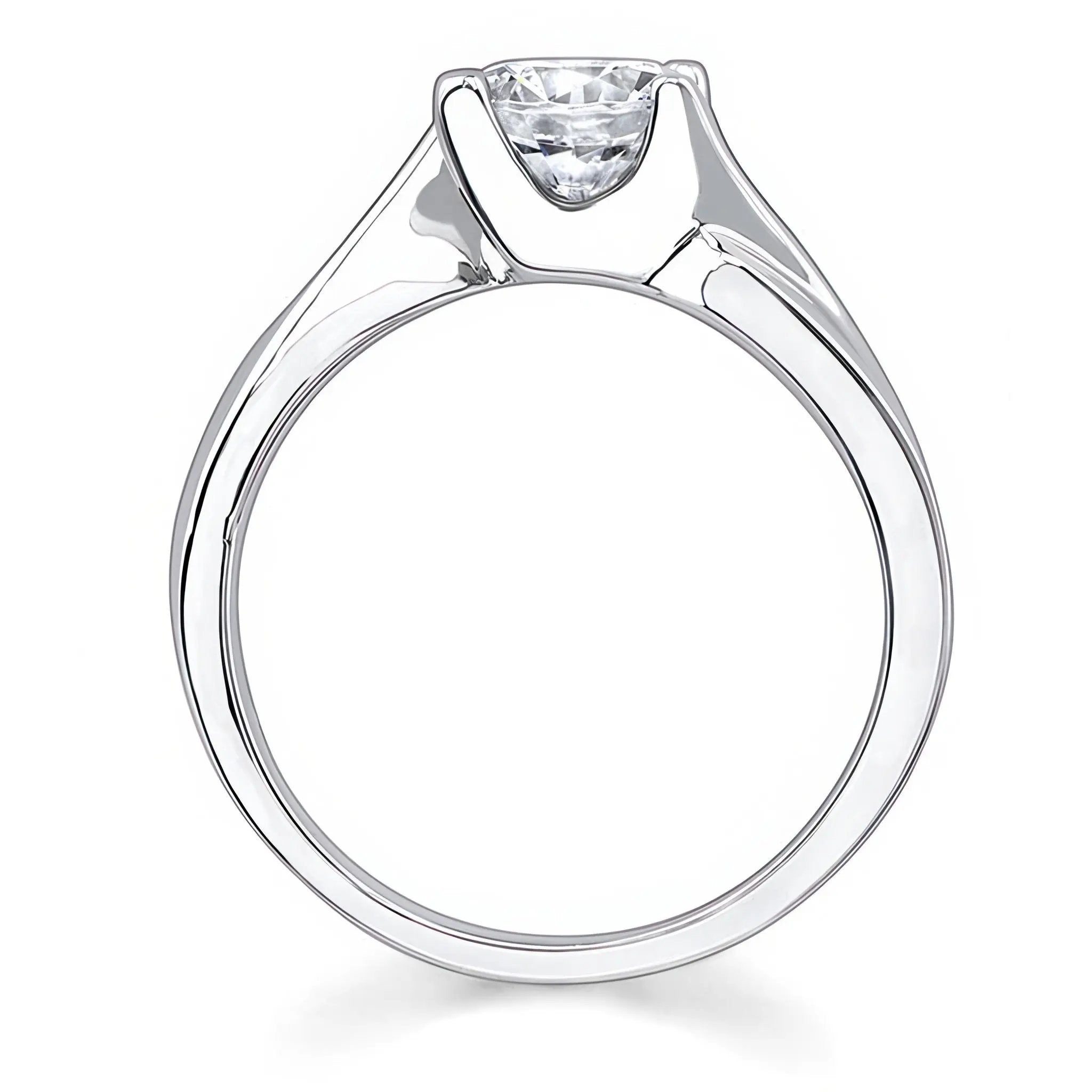 This half channel round lab diamond solitaire ring features a half channel half prong set round center with a simple shank.
