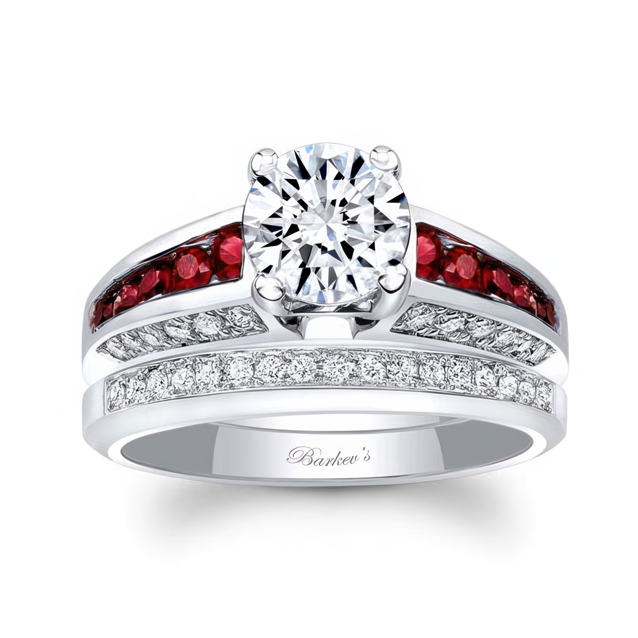 Moissanite Channel Set Wedding Ring Set With Rubies