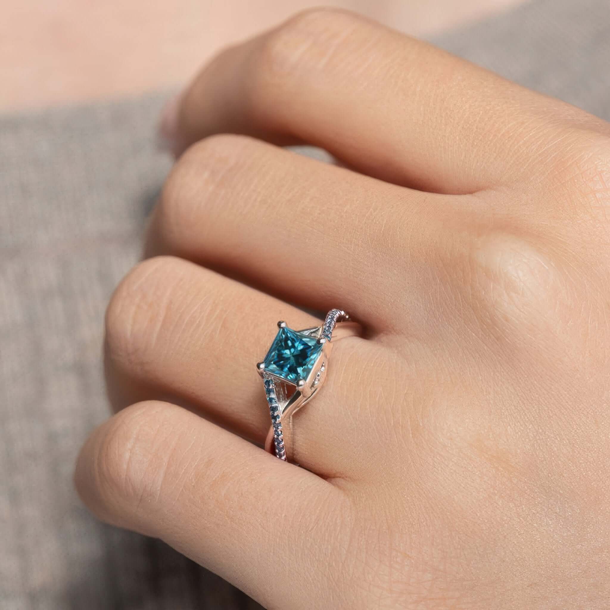 One Carat Princess Cut Blue Diamond Ring