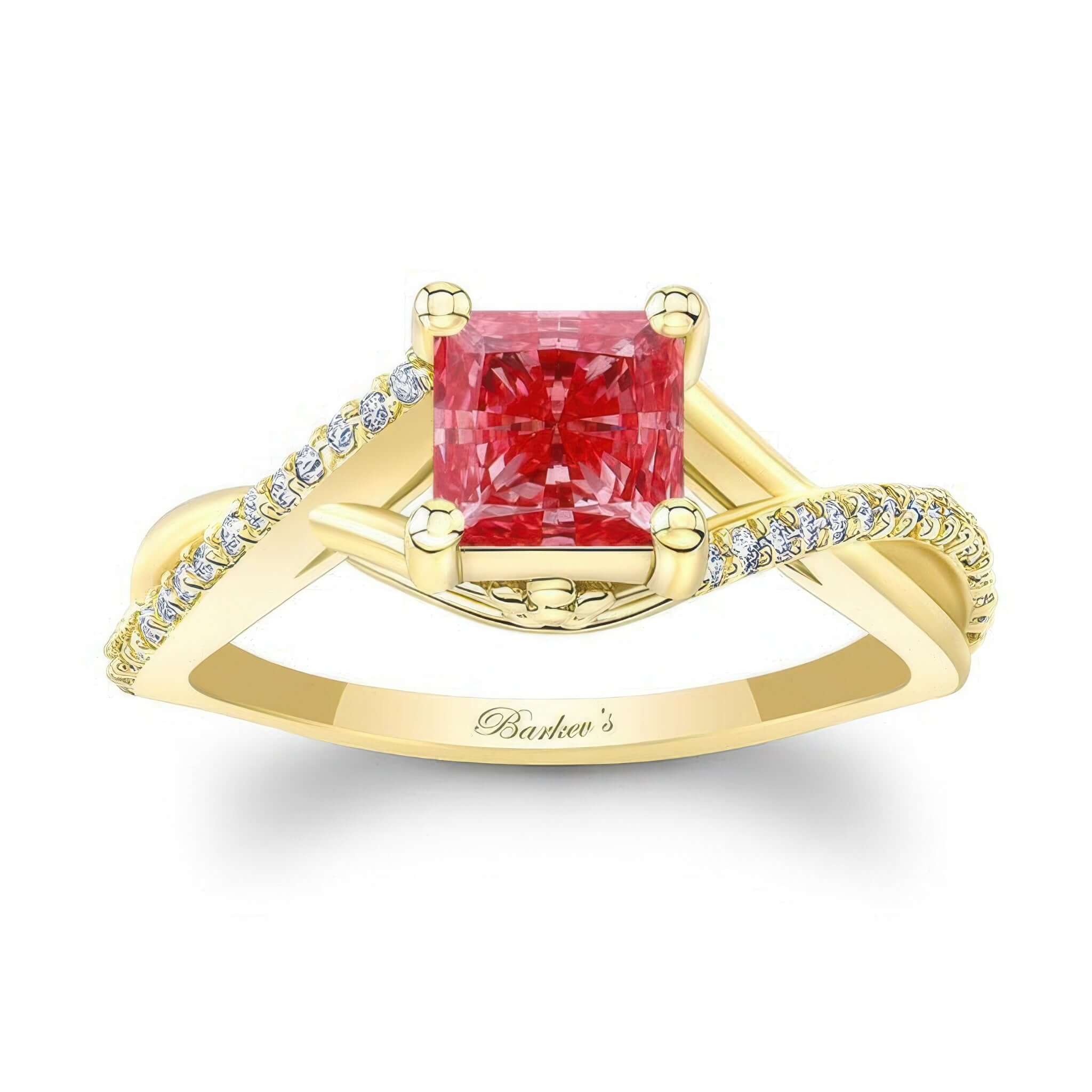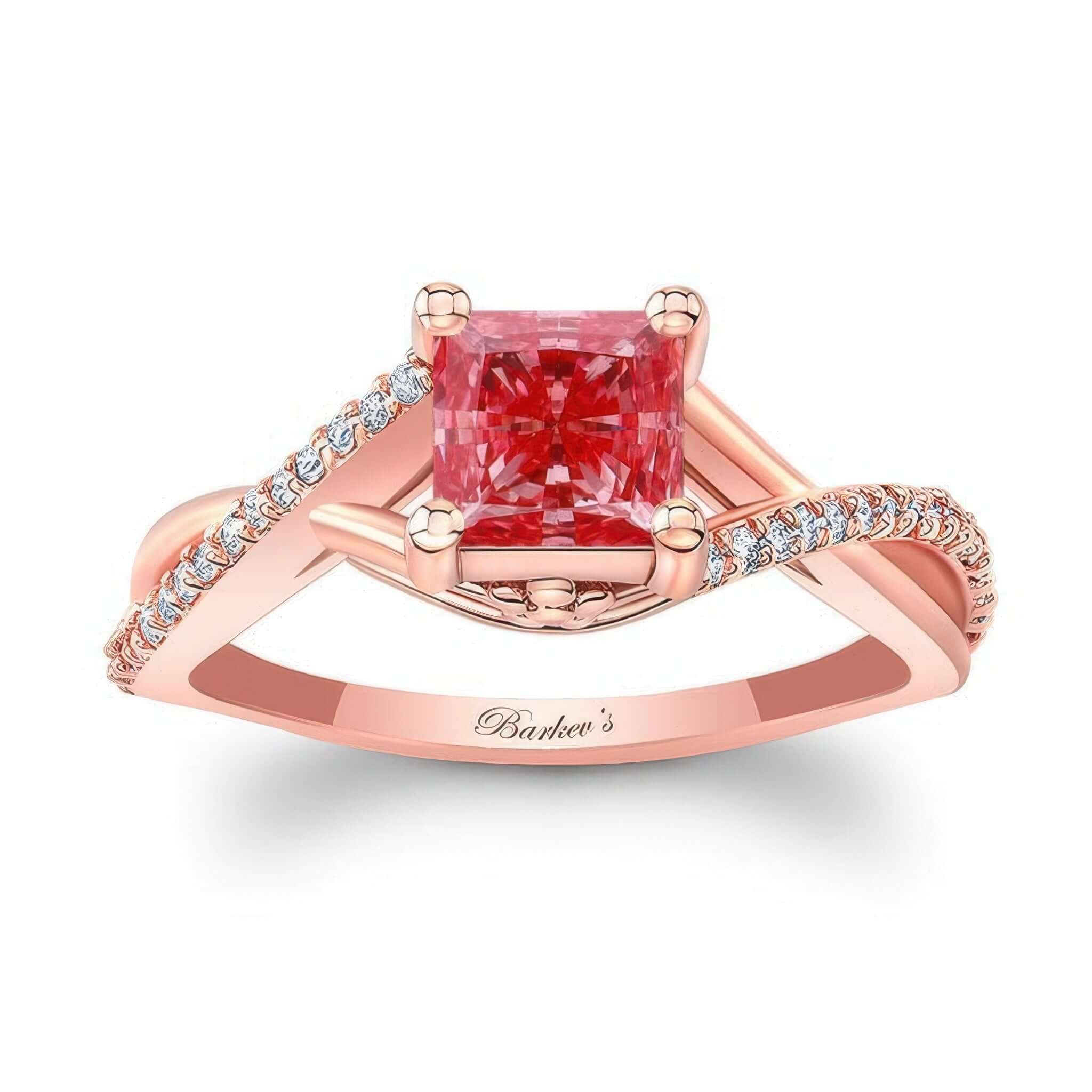 One Carat Princess Cut Lab Grown Pink Diamond Ring