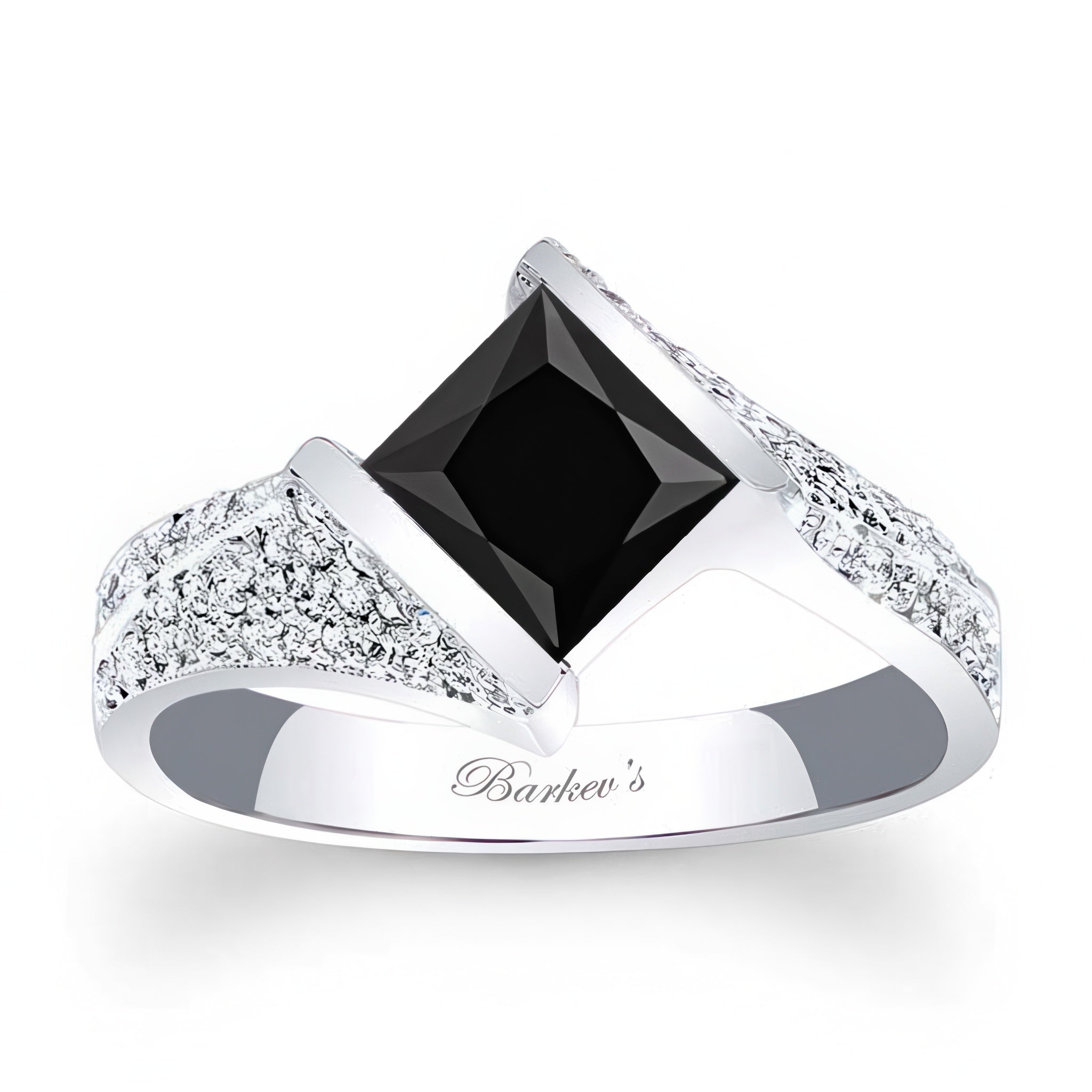 Pave Princess Cut Black And White Diamond Ring