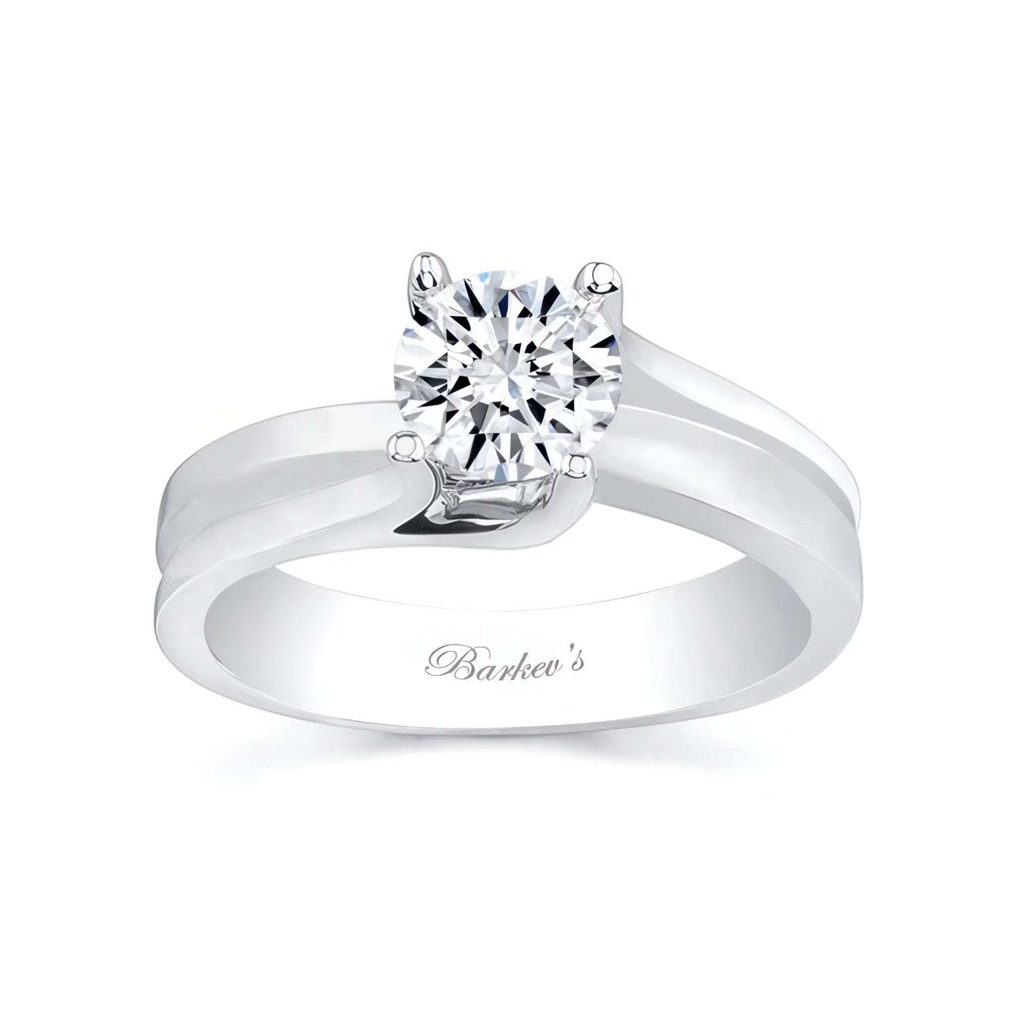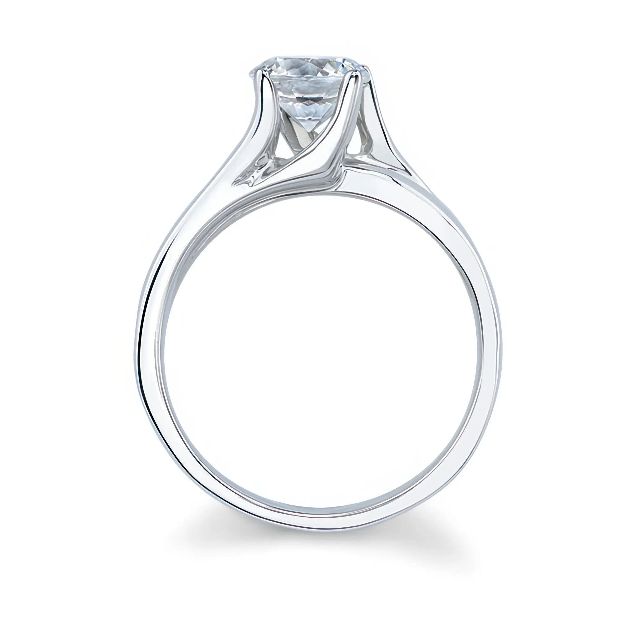 This split shank round lab diamond solitaire engagement ring features a prong set round center with a unique split shank.