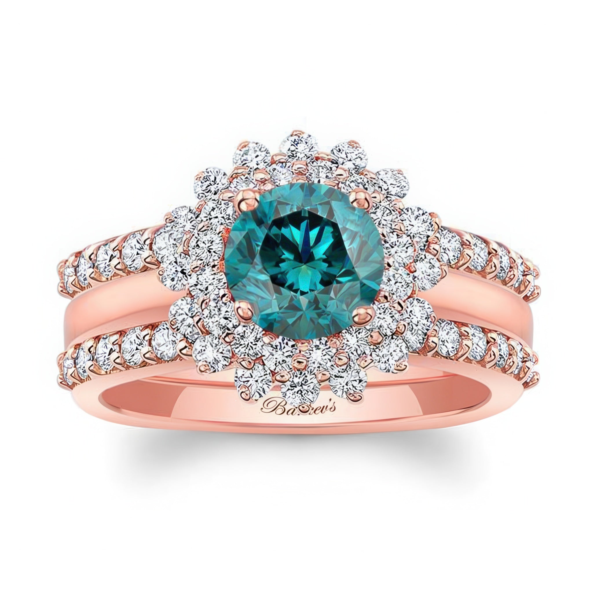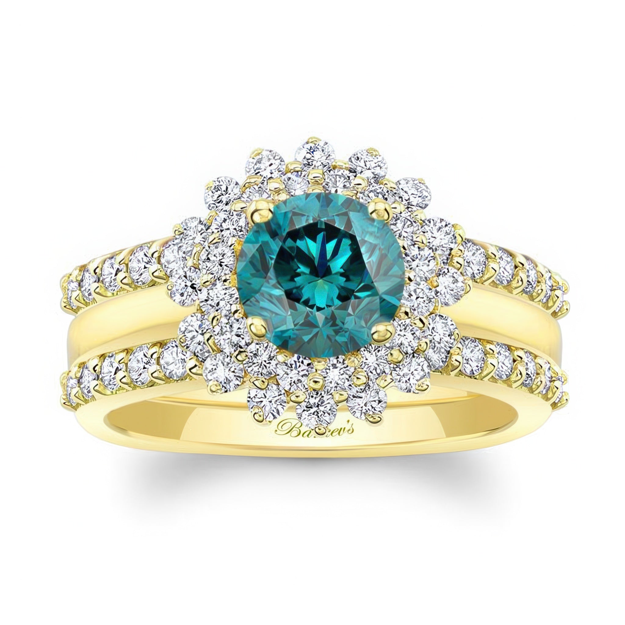 Starburst Blue And White Diamond Bridal Set With Two Bands
