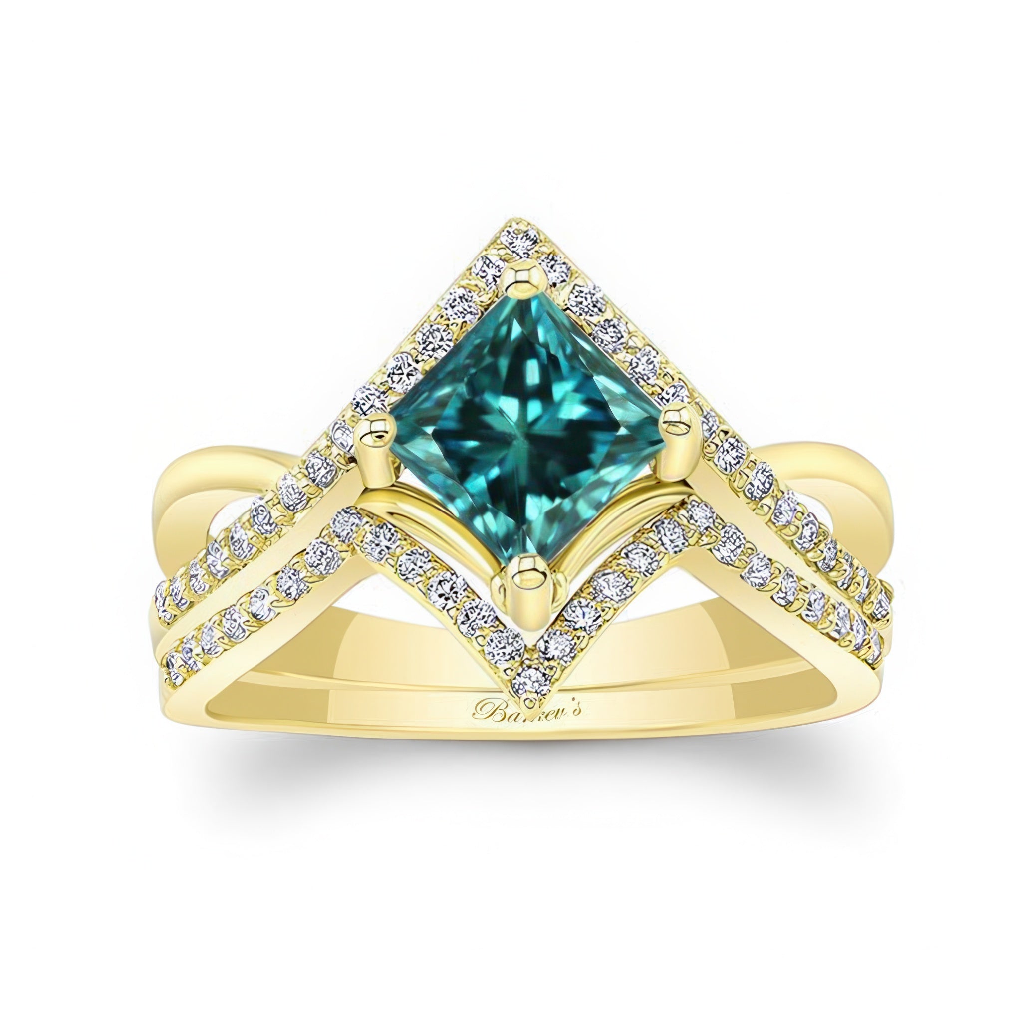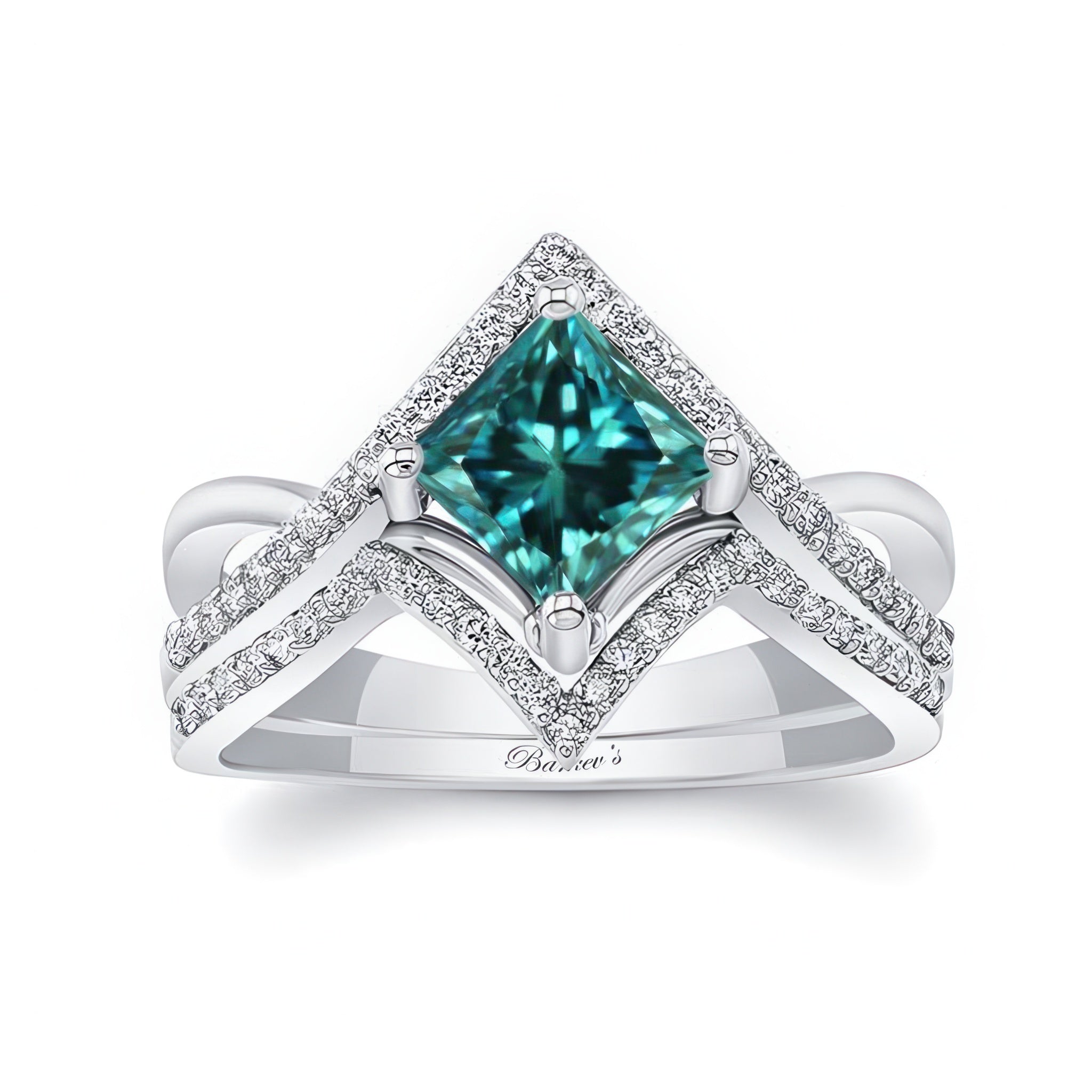 Unique Princess Cut Blue And White Diamond Wedding Set
