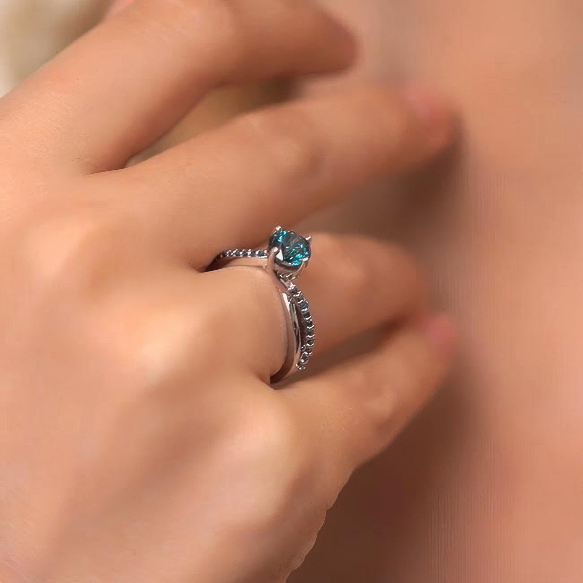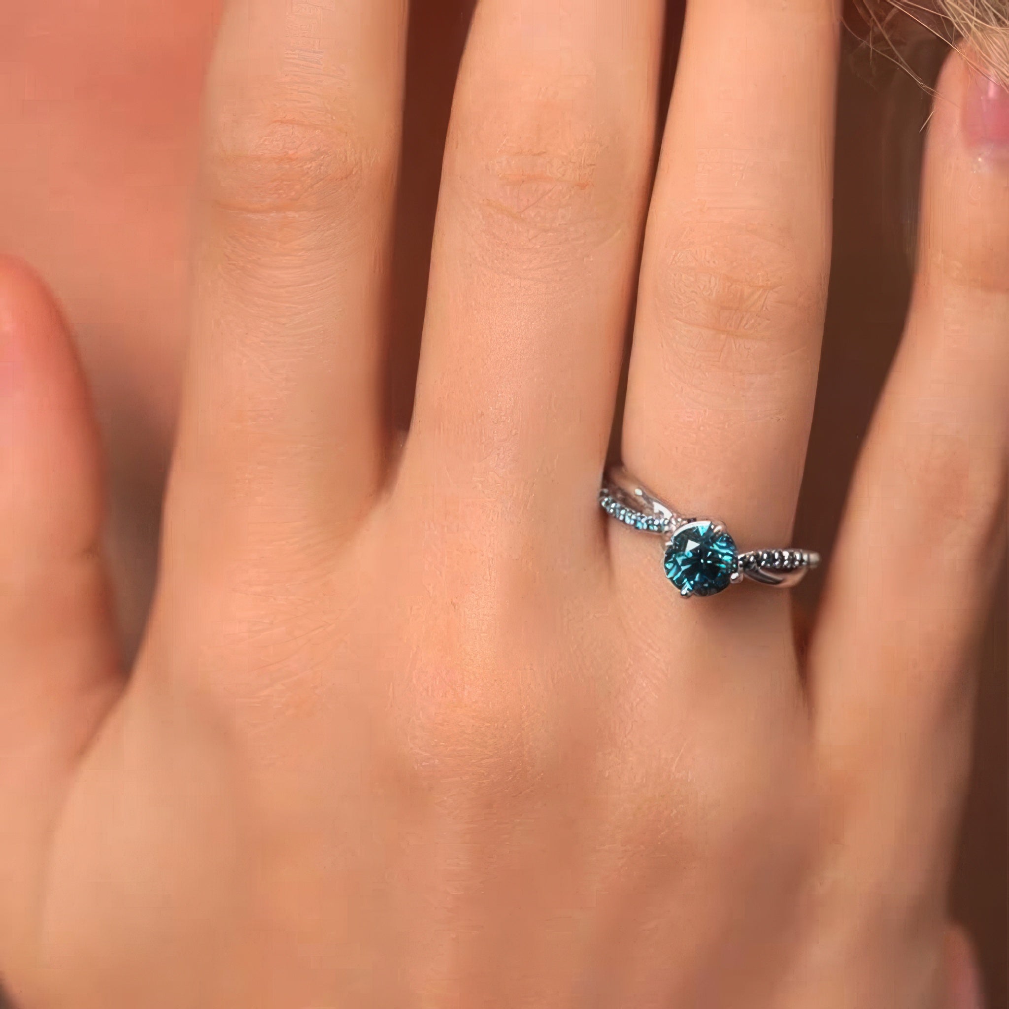 Something blue just got a bold upgrade. The Twisted Blue Diamond Engagement Ring centers around a radiant round blue diamond, glowing with deep oceanic hues that symbolize loyalty, trust, and lasting love. More vibrant and expressive than traditional white diamonds, the blue diamond brings an unexpected twist of personality to this timeless design.