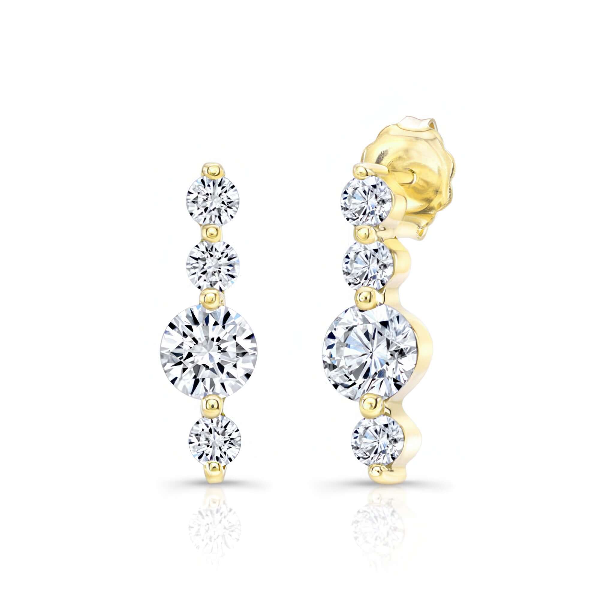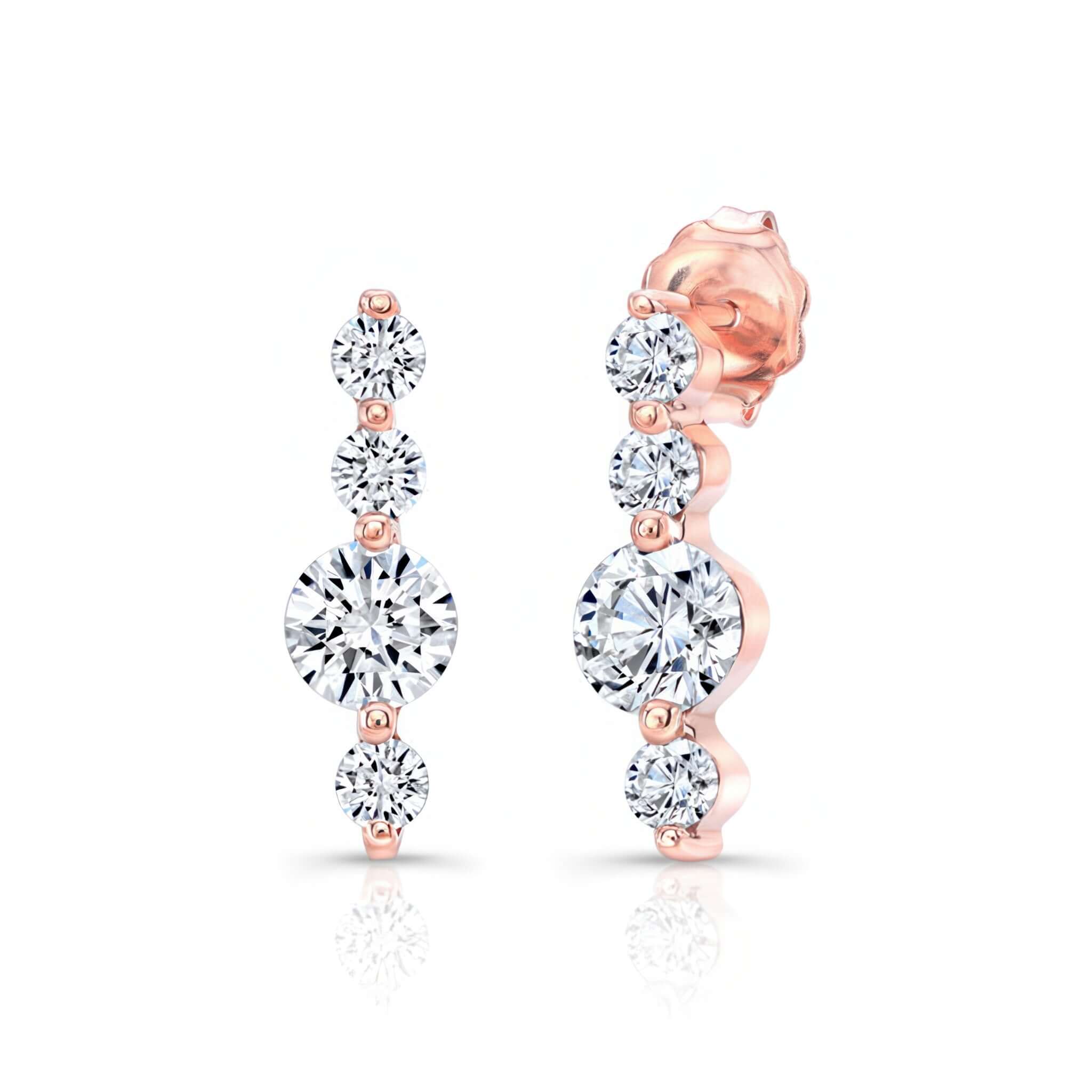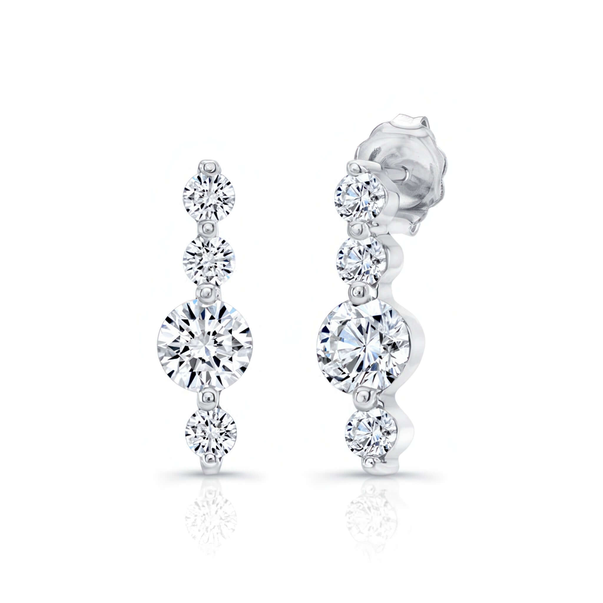 A pair of unique linear lab diamond earrings featuring an interrupted pattern of diamonds cascading down the length of the earrings for a stunning look.