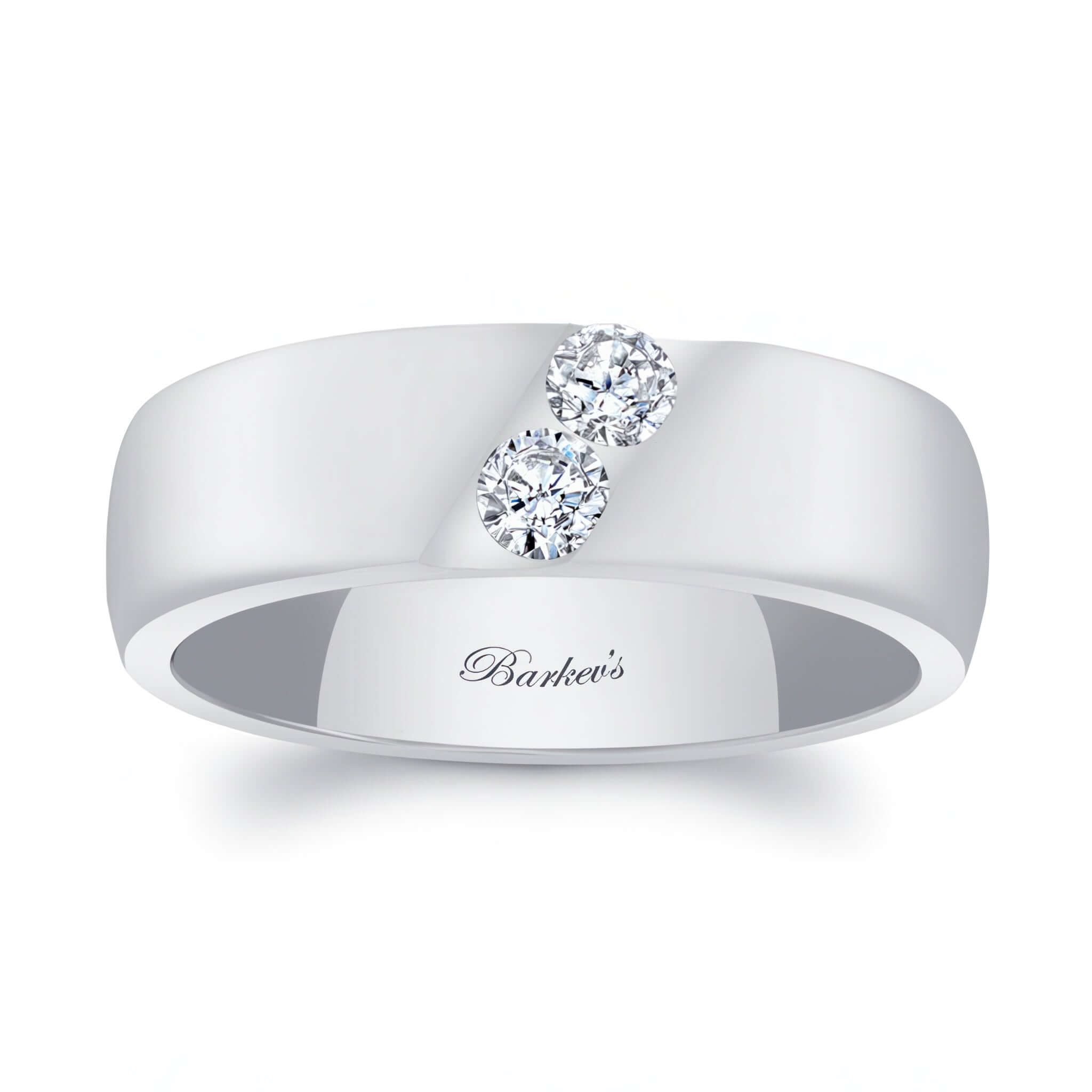 This mens 7mm diagonal 2 diamond band features 2 channel set diamonds sitting diagonally on a polished band.