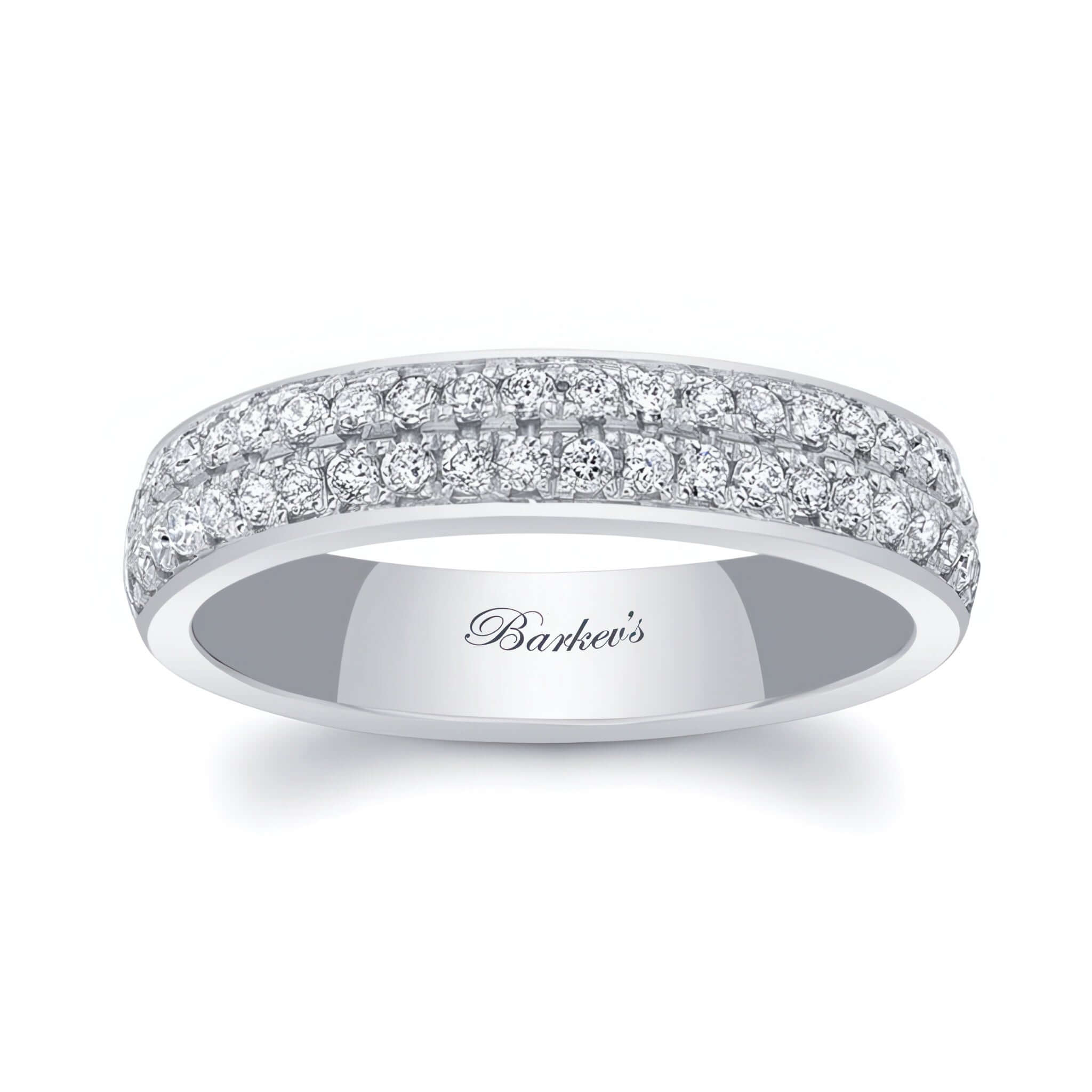 This 4mm two row domed diamond wedding bands features 2 rows of shared prong set diamonds and domed sides.